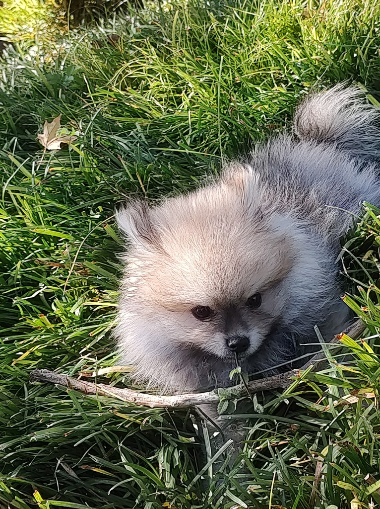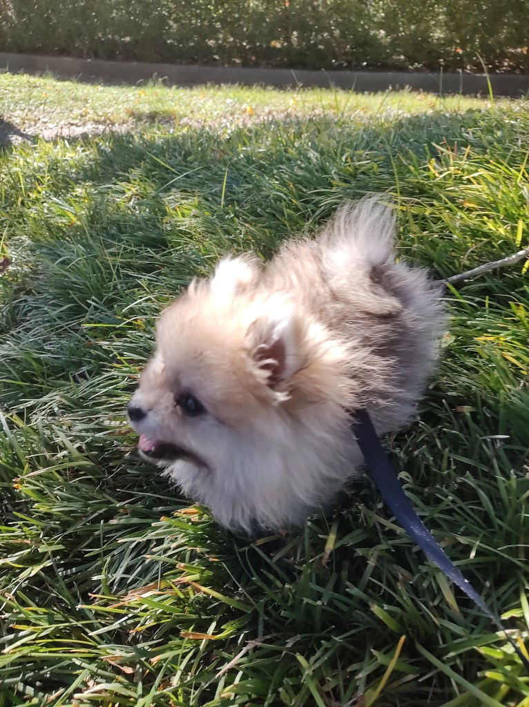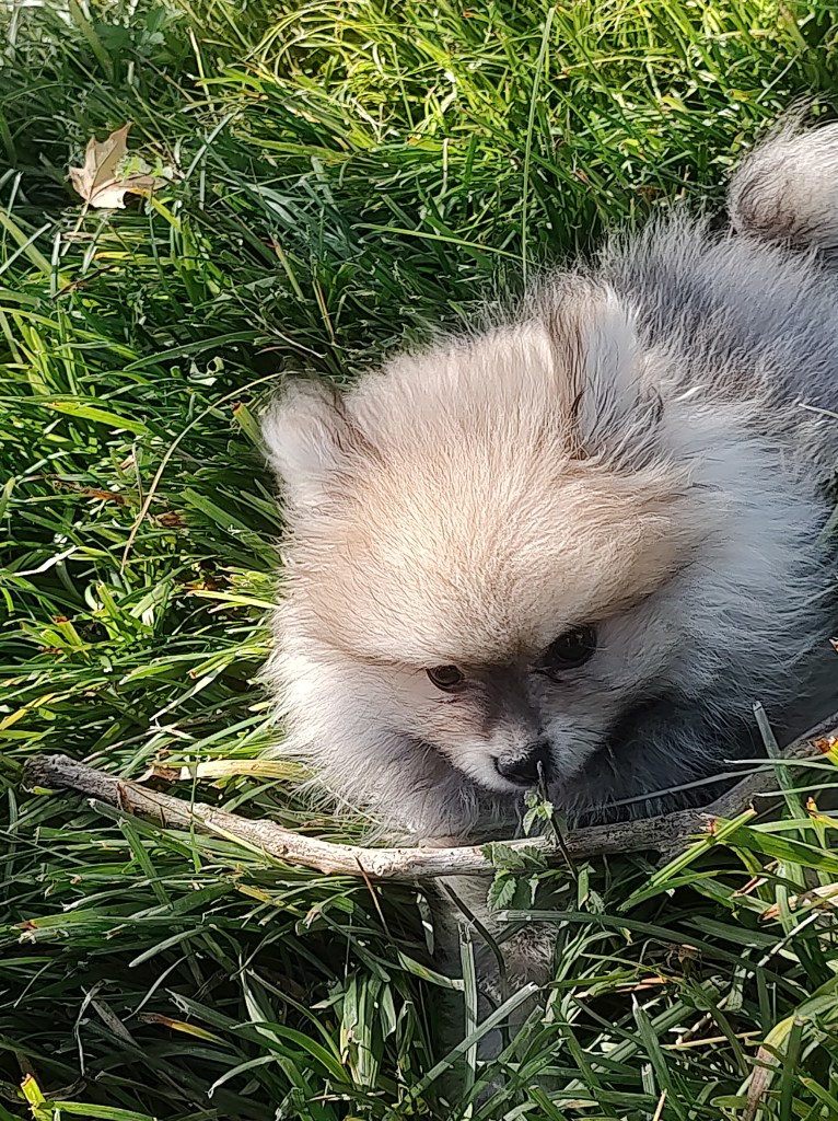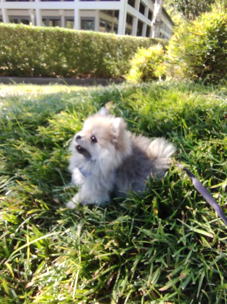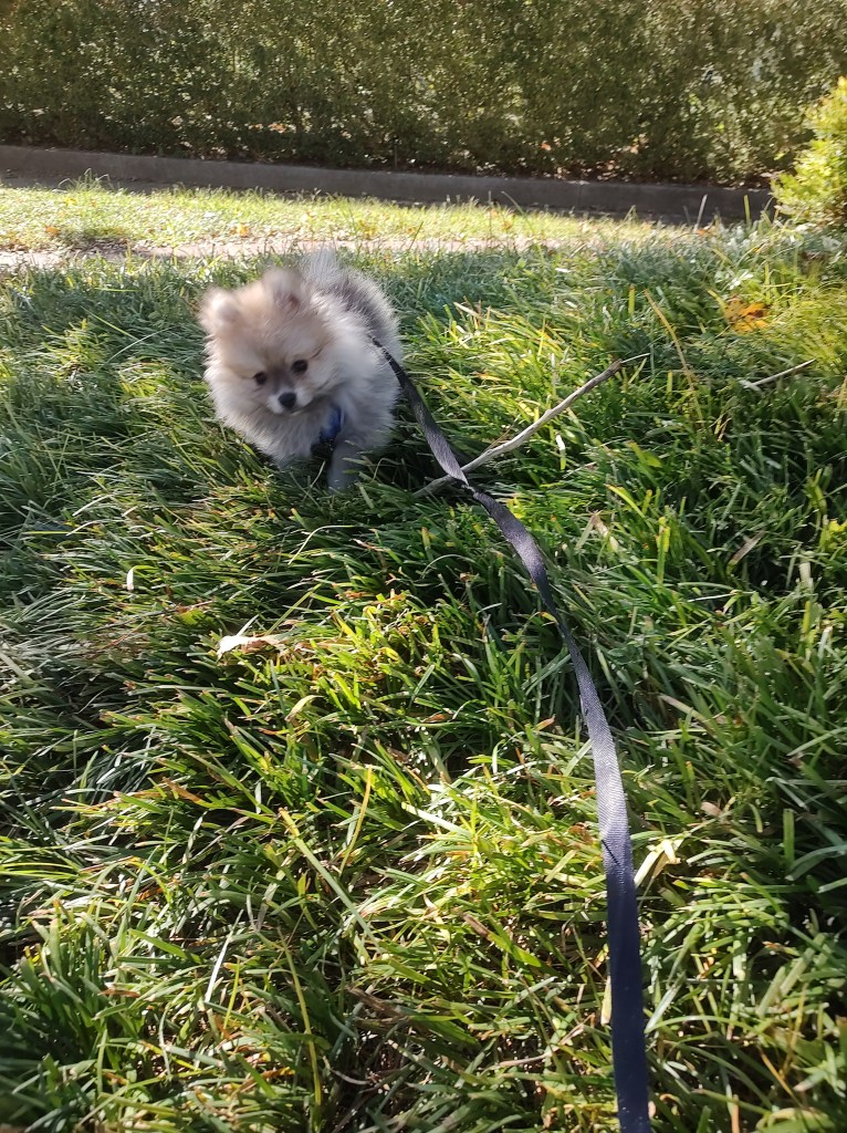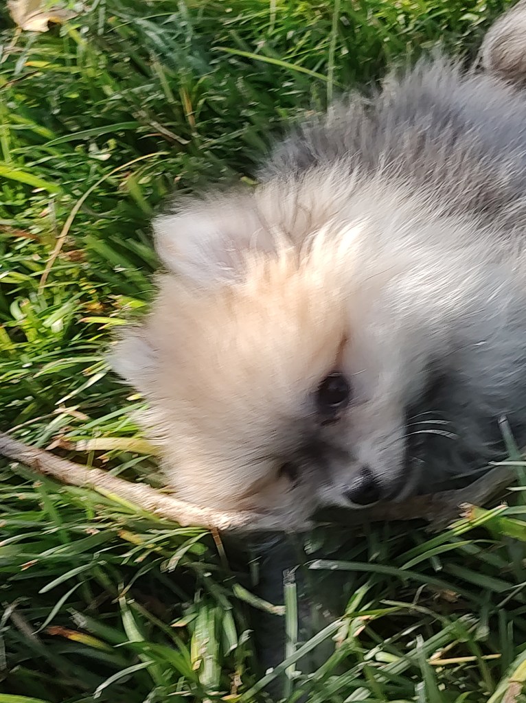 Schnuggie got to play in tall grass this day. He took a mighty nap and then took on the world. He looks very cat and raccoonish.