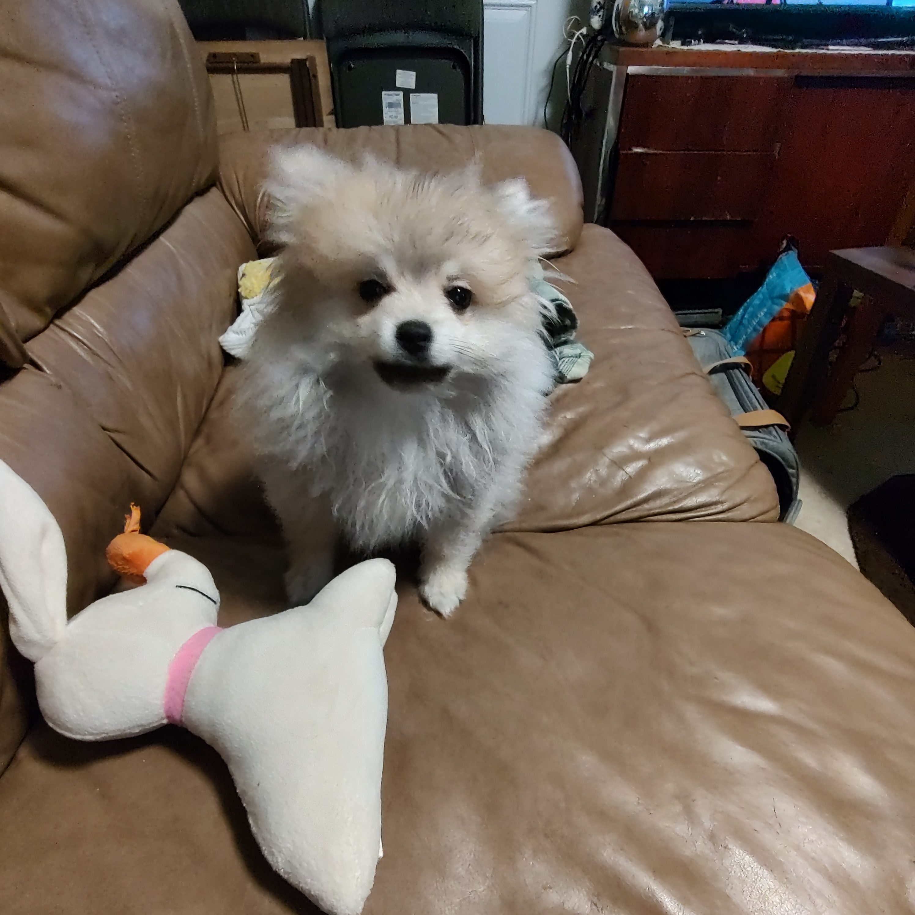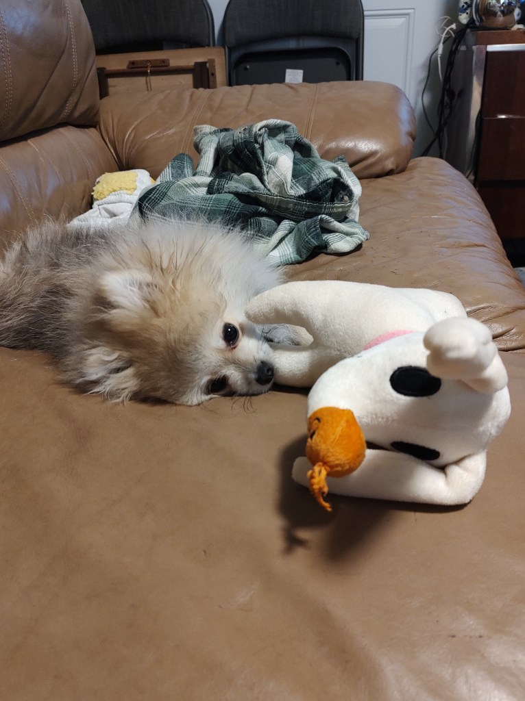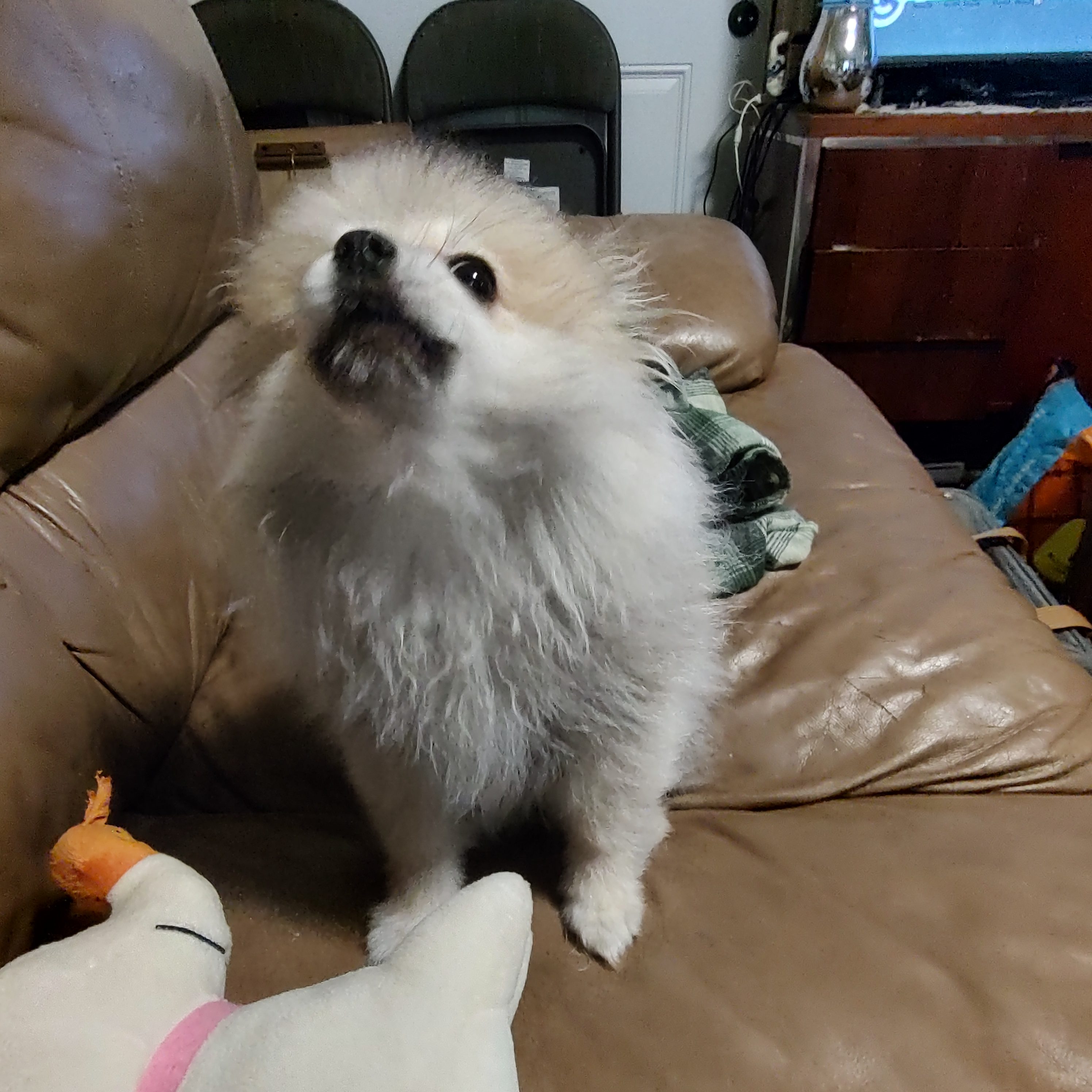 Schnuggie will bark at me if I dare leave the couch. He also likes to chew on my hair.