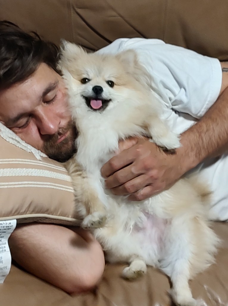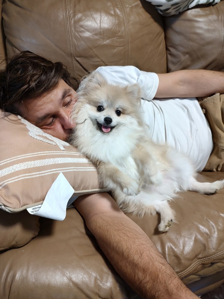 Pomeranians are great family dogs. Schnuggie is friendly and loving to everyone. This breed does have a favorite person that they disgustingly love the most.