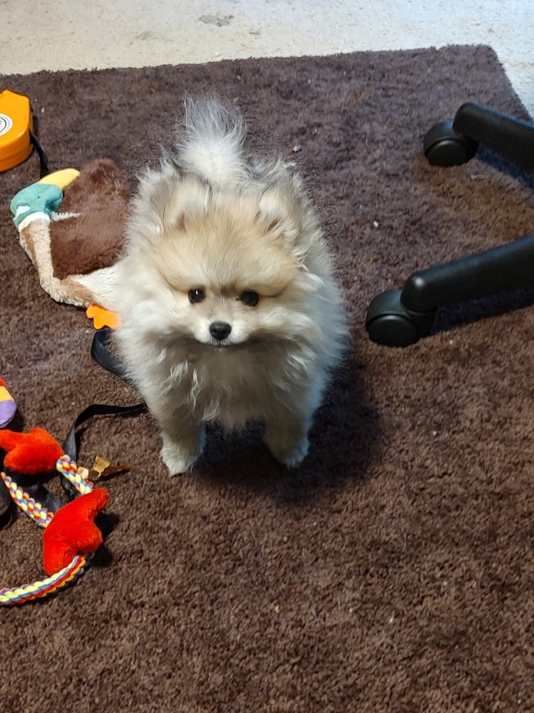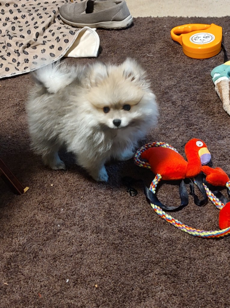 When I started looking at Pomeranians, I almost picked a different pup that had much darker colors. I was surprised to find out the darker one was going to turn into a blonde one.