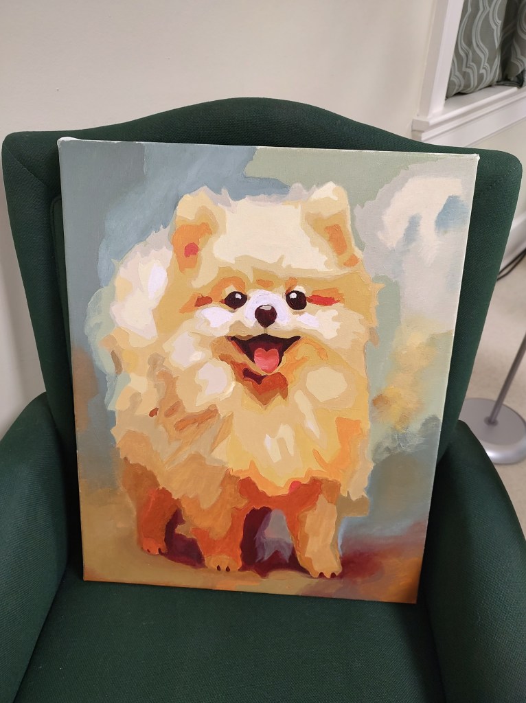 Schnuggie is more khaki and white and the painting is more gold. But the face is pretty similar.