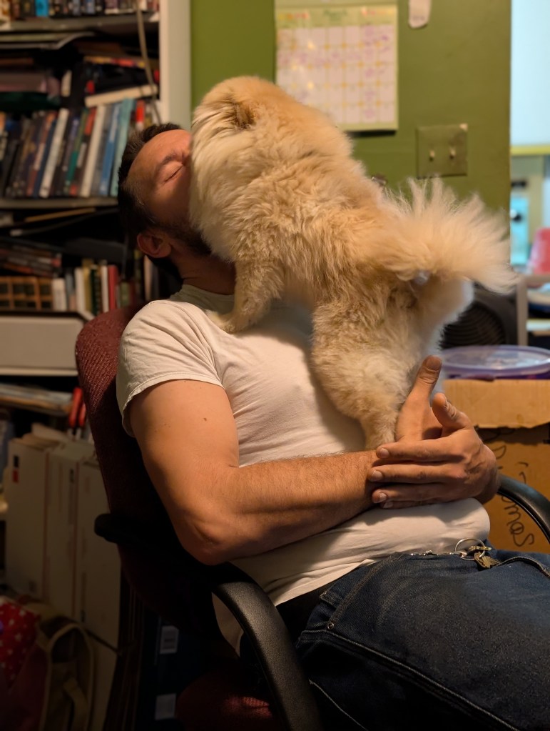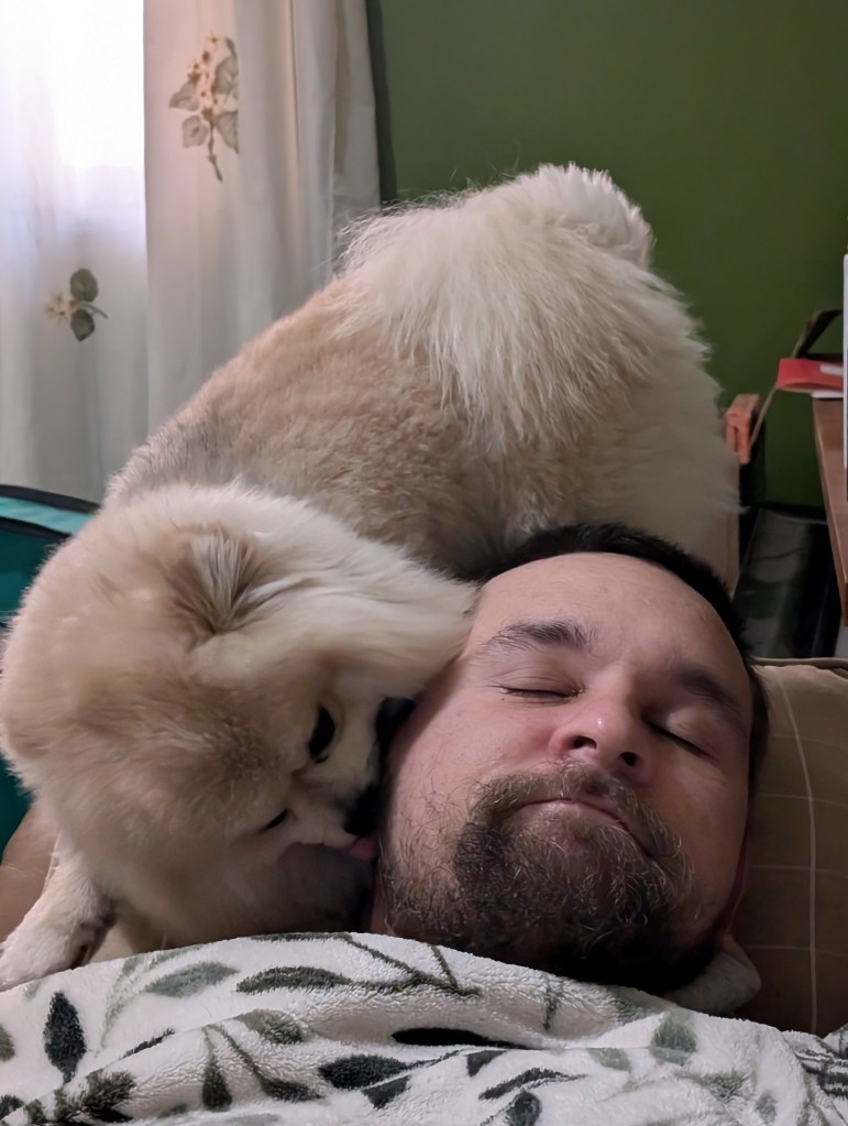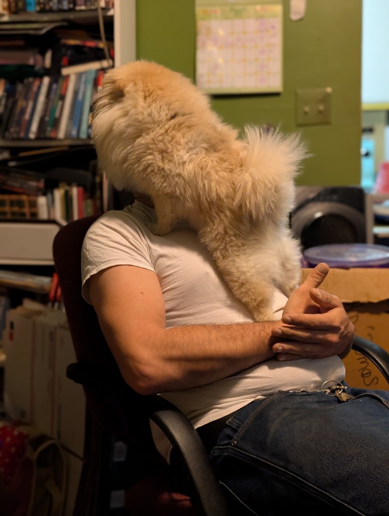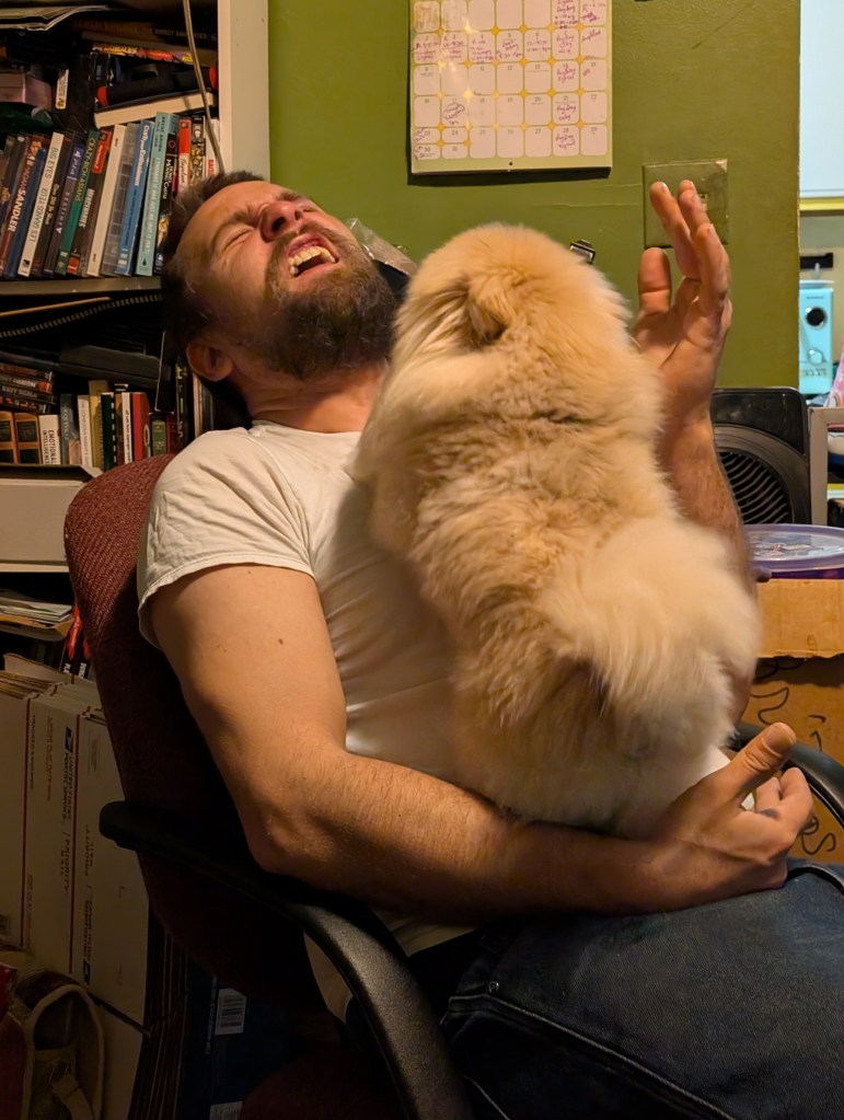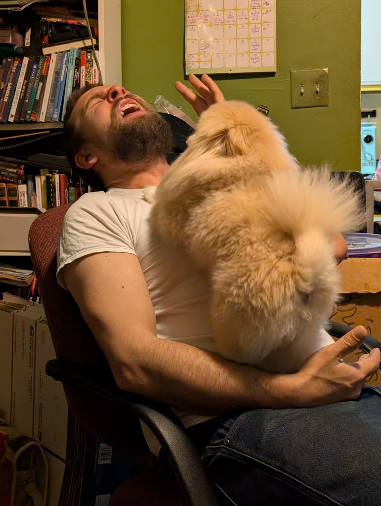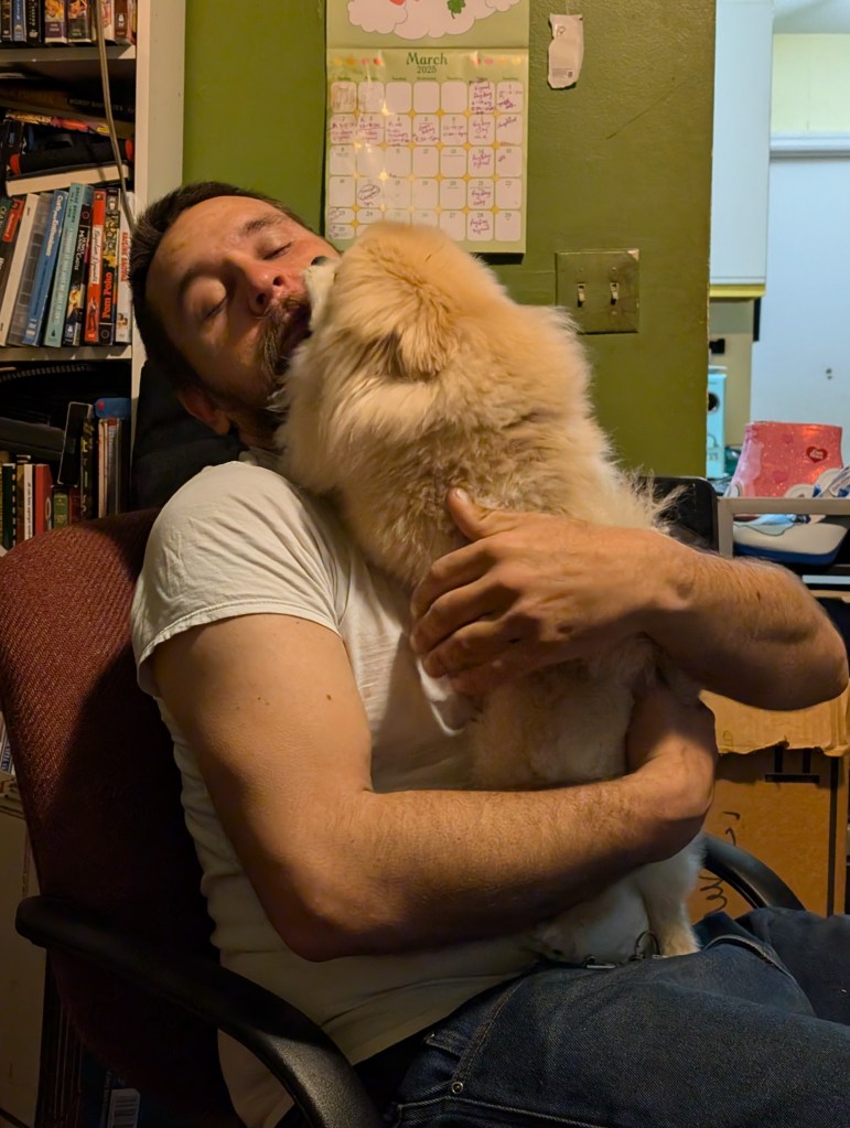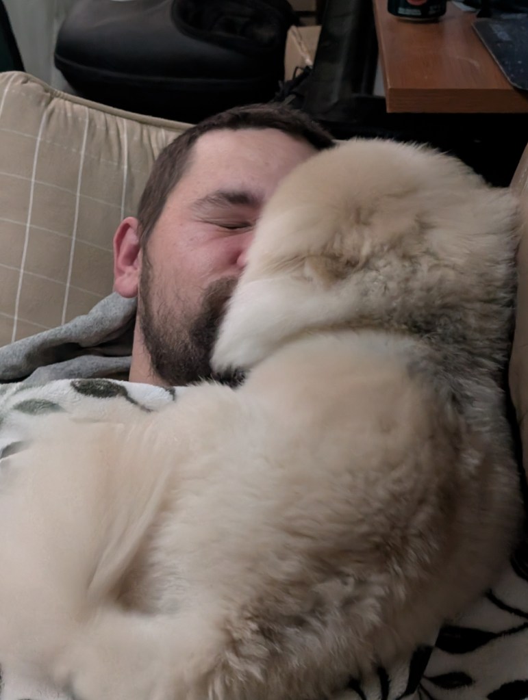 Schnuggie loves to lick your face so much that you can’t breathe. His love can literally be suffocating.