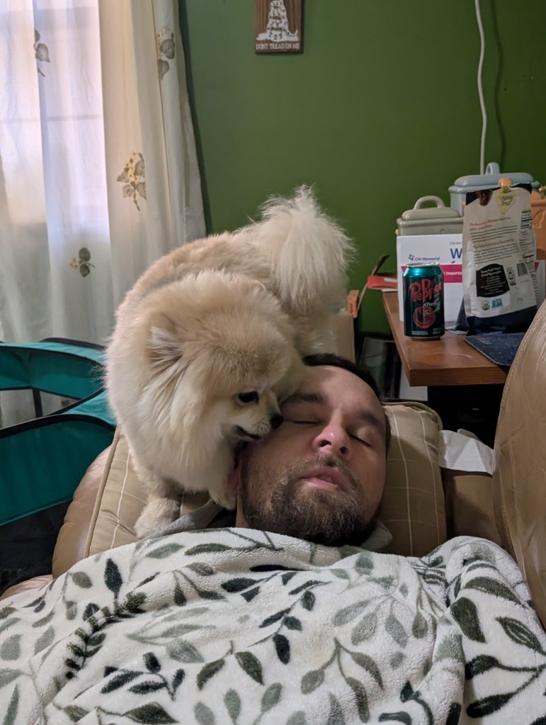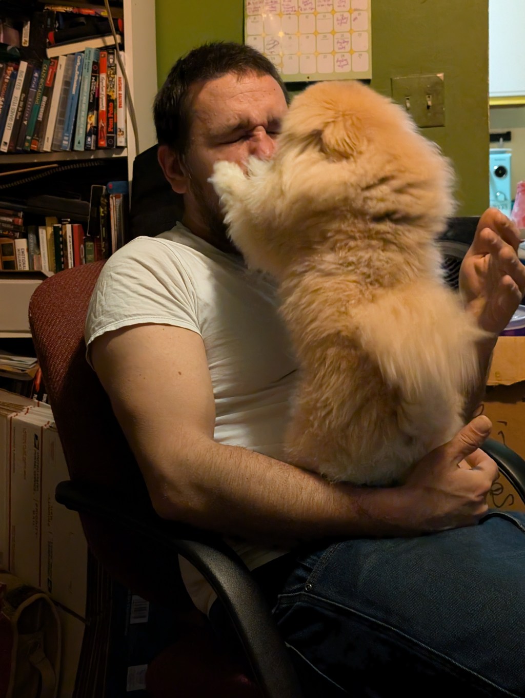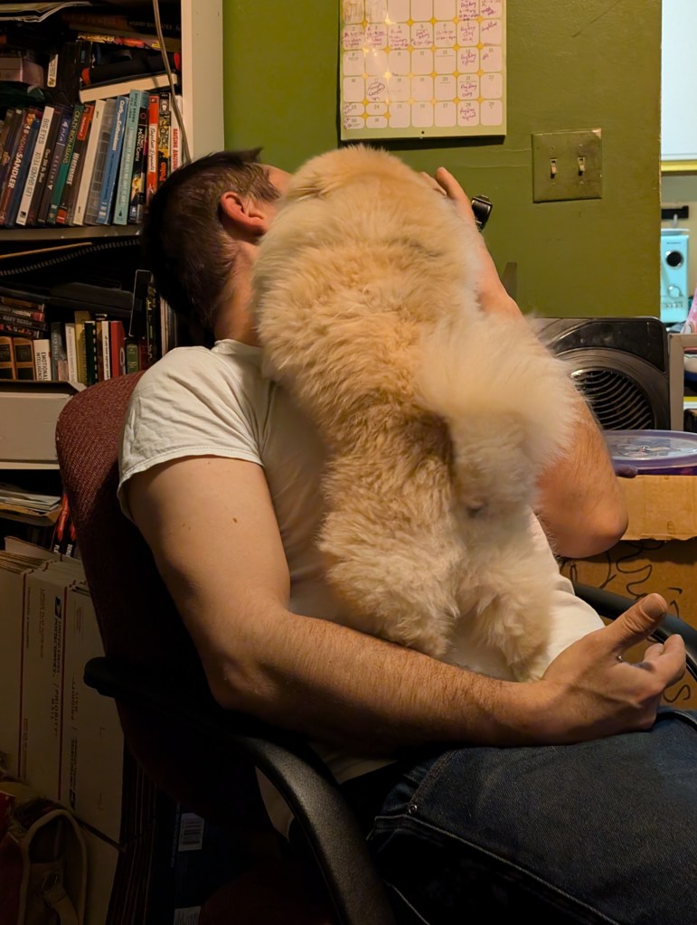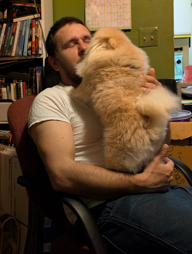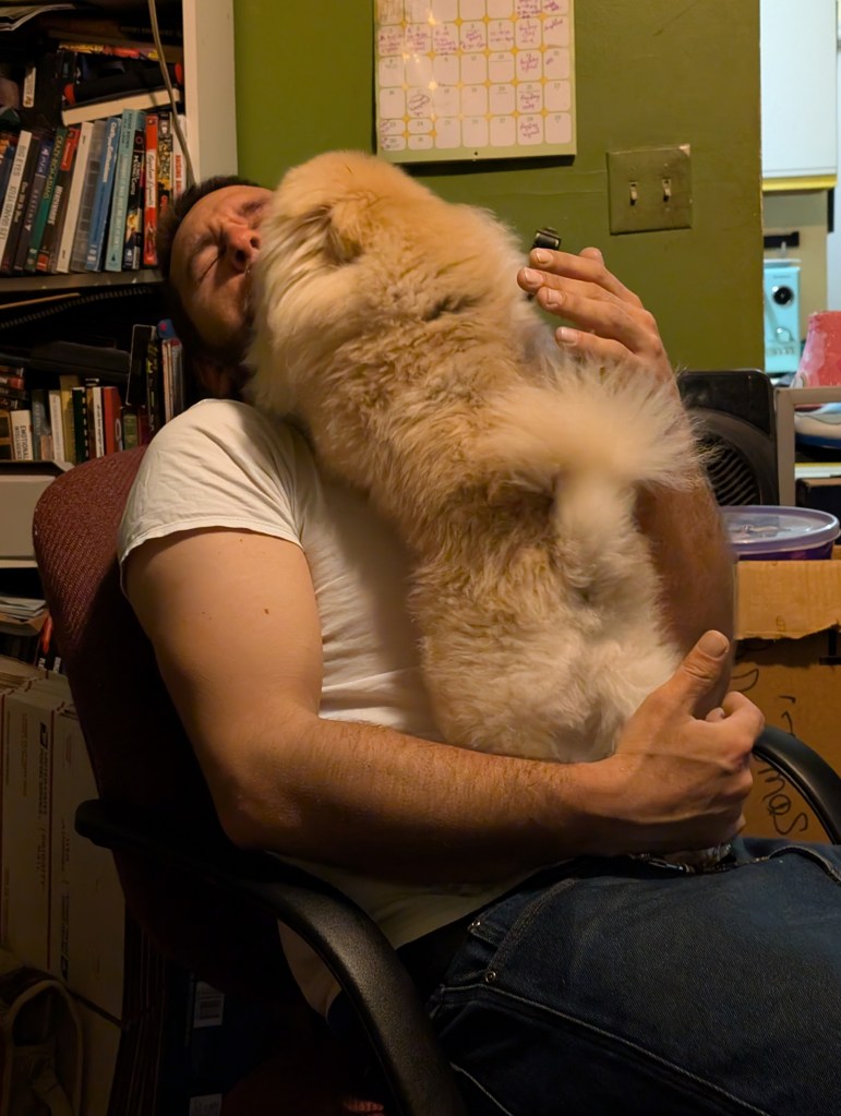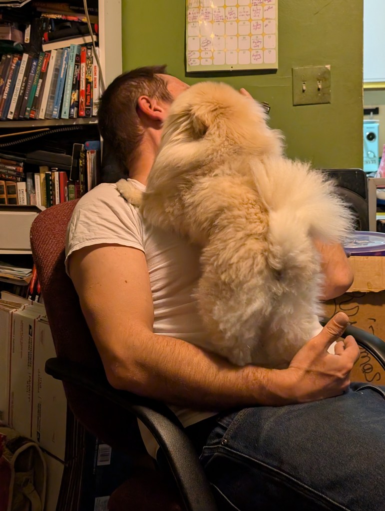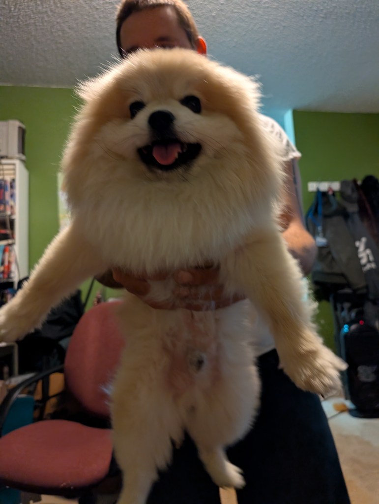 Schnuggie loves to lick your face so much that you can’t breathe. His love can literally be suffocating.
