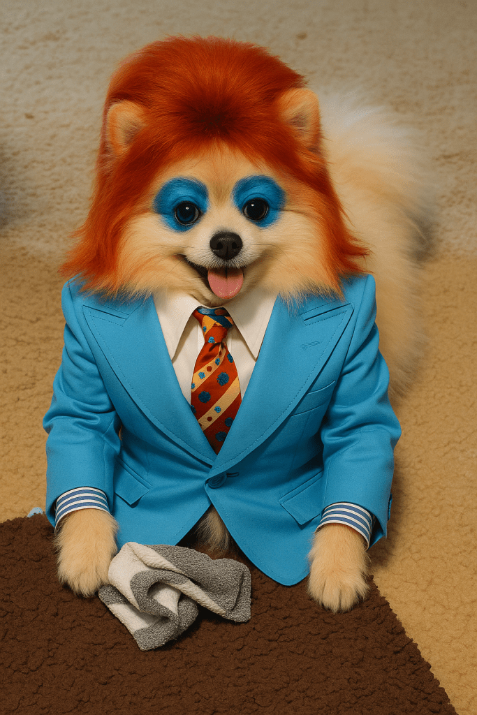 It’s a god awful Schnugg affair, to the dog with the mousey hair. His mommie has grabbed his leash, and his daddy throws away his treat.